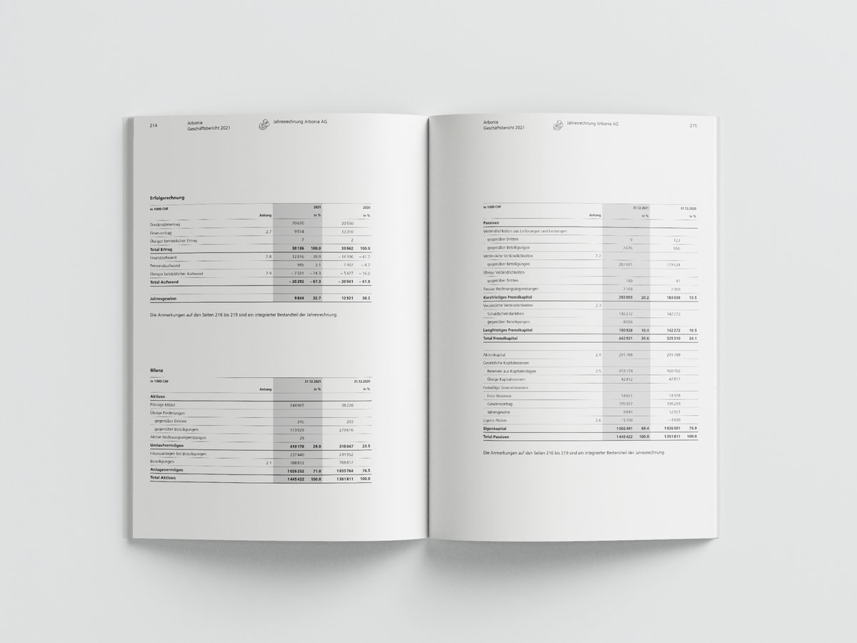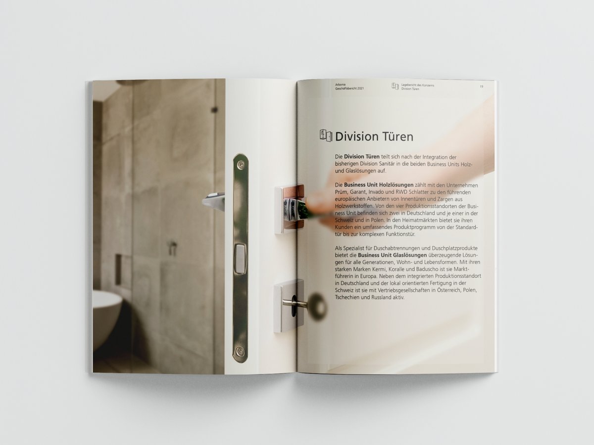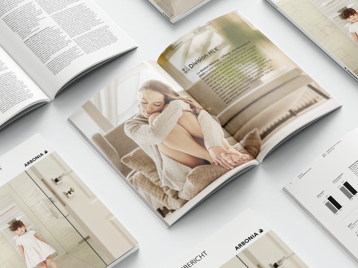 Für den börsenkotierten Gebäudezulieferer Arbonia gestaltete KA BOOM einmal mehr den Geschäftsbericht – Layout und Satz für die gedruckte Version, Screendesign für die digitale Ausgabe.