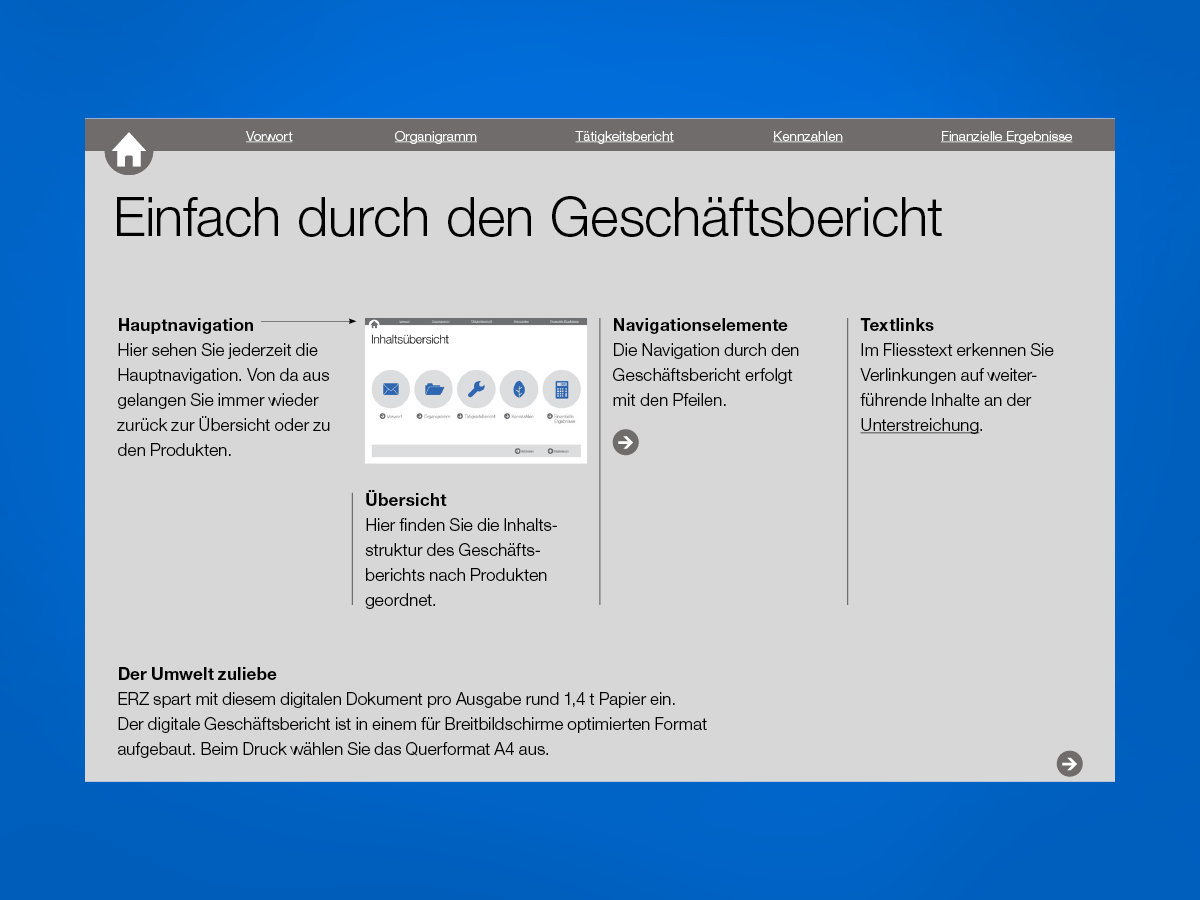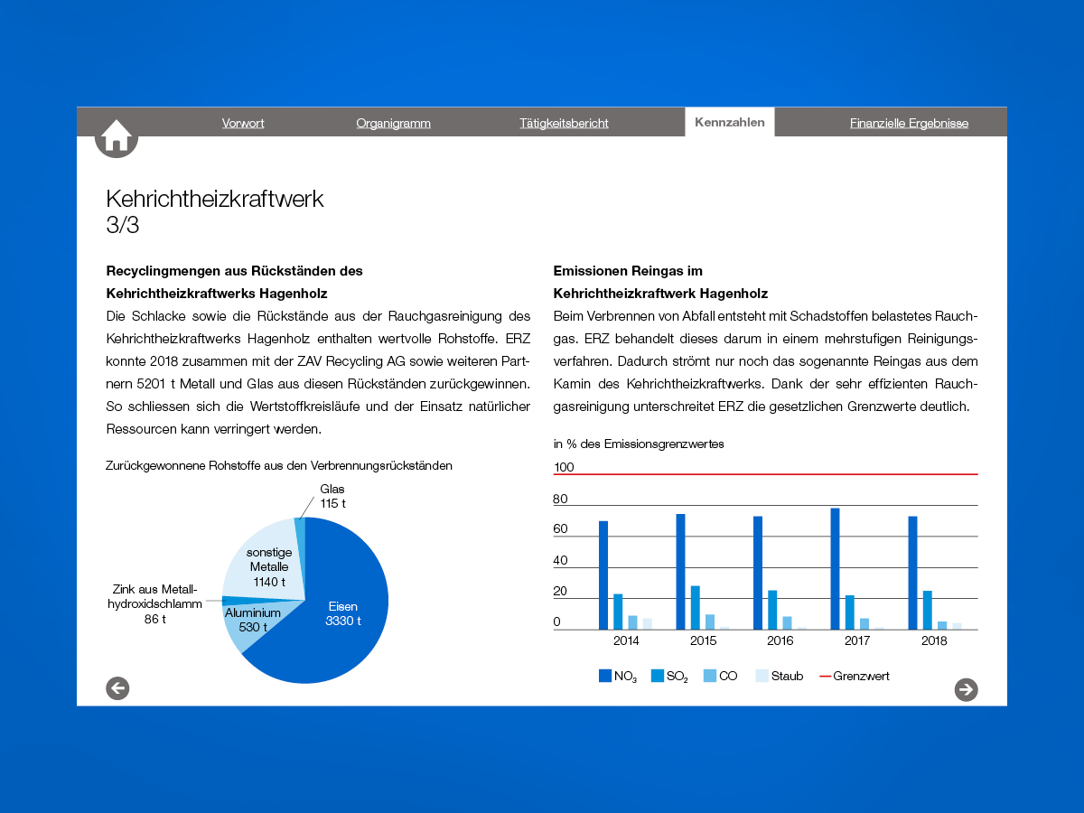 Für ERZ Entsorgung + Recycling Zürich hat KA BOOM den digitalen Geschäftsbericht 2018 gestaltet. Die digitale Form ist nicht nur benutzer- sondern auch umweltfreundlich. Damit spart ERZ 1,4 Tonnen Papier!