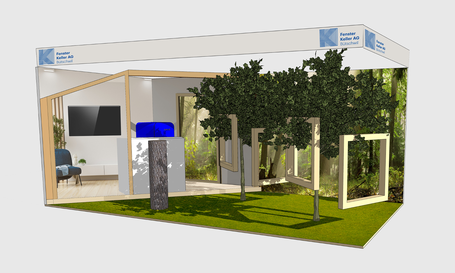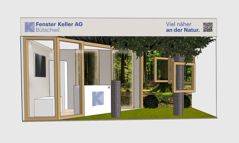 Die Fenster Keller AG aus Bütschwil ist ein Familienunternehmen, das seit 1947 Holz- und Holz-Metall-Fenster produziert. Bislang präsentierte das Unternehmen seine Produkte auf Messen über einen sehr technischen Stand, an dem Besuchende mit vielen Informationen konfrontiert wurden. Ziel des neuen Messeauftritts war es, auf regionalen Gewerbemessen aufzufallen, die Besuchenden emotional anzusprechen und Fenster Keller AG als nachhaltigen, lokal verwurzelten Anbieter zu positionieren.