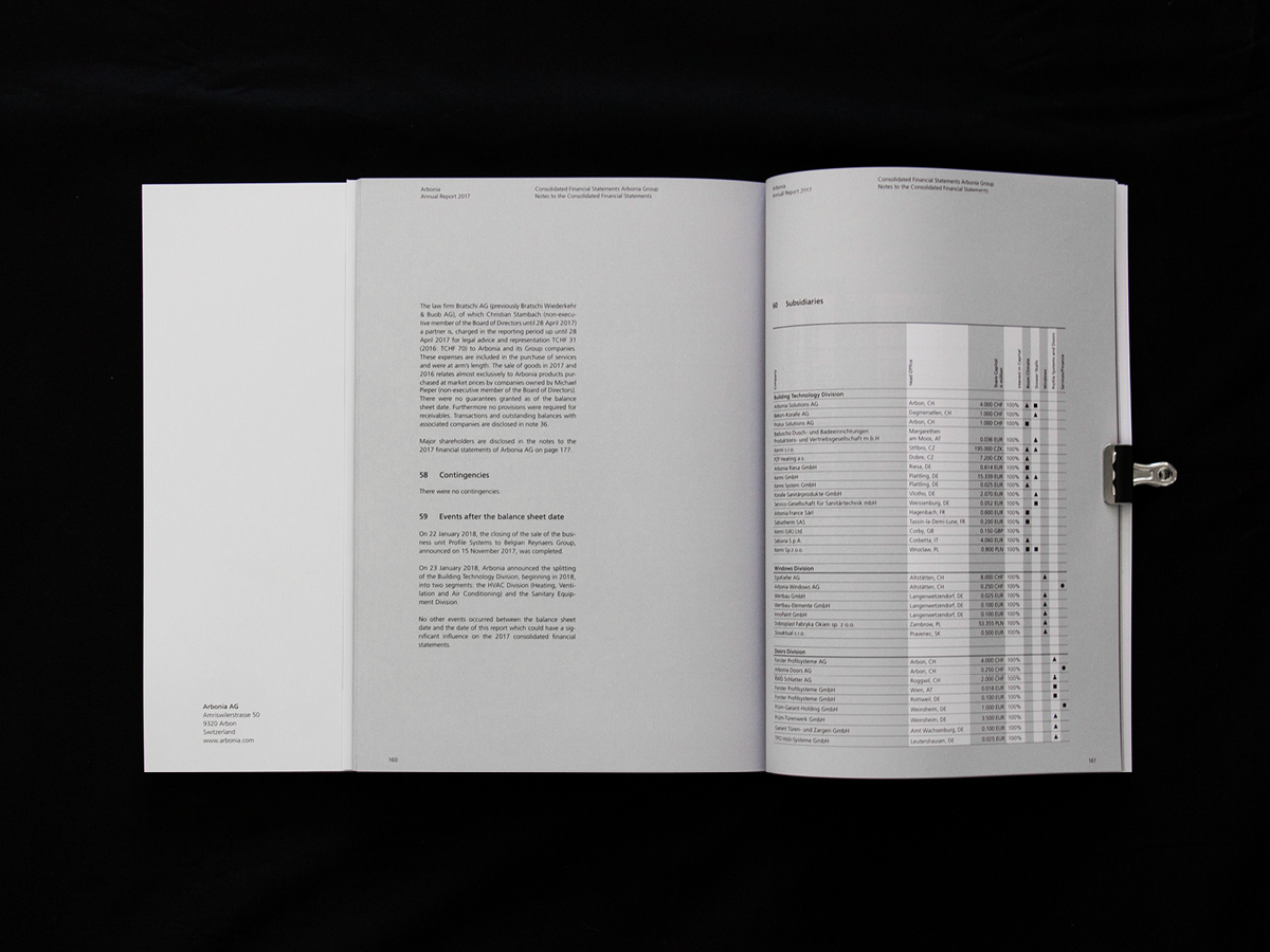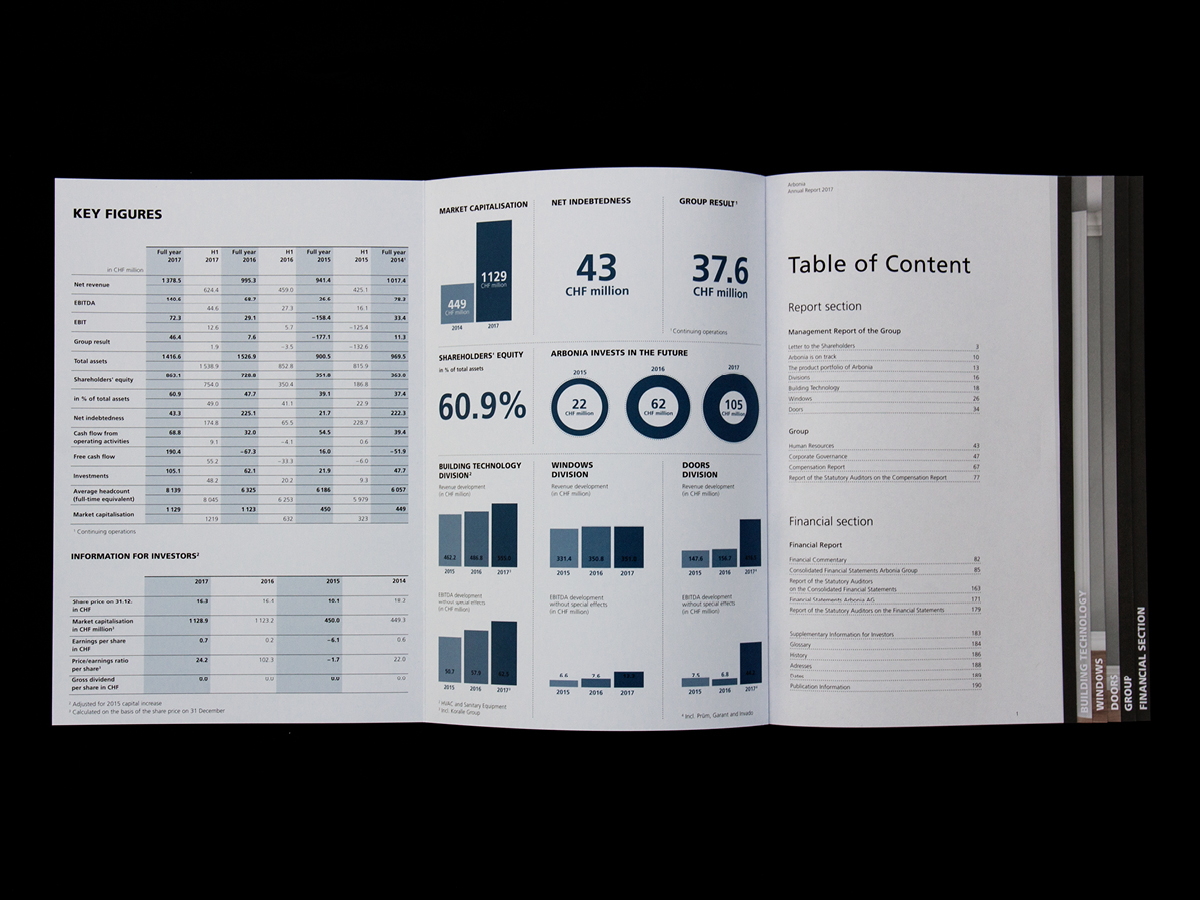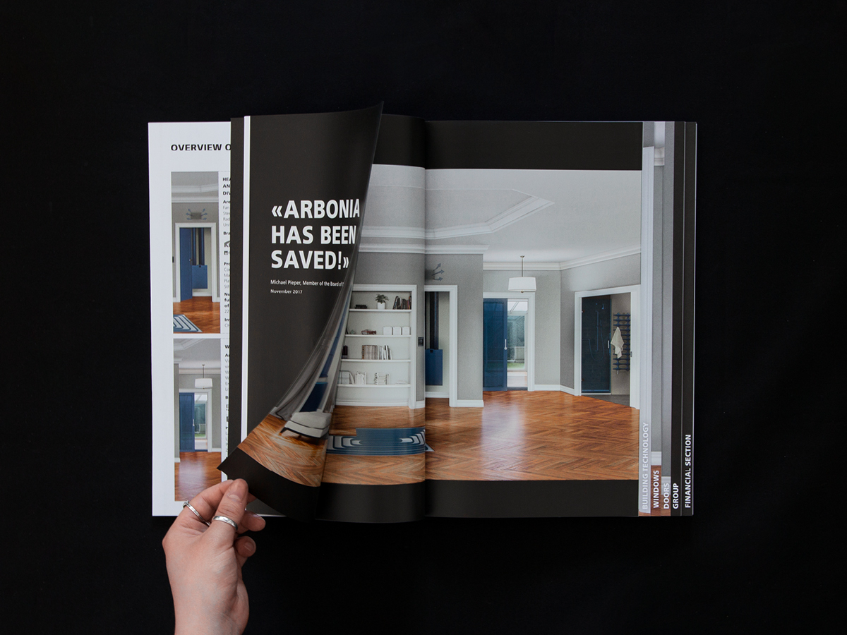 192 Seiten stark ist der Geschäftsbericht des international tätigen Bauzulieferers Arbonia. KA BOOM durfte den Bericht konzipieren, gestalten und das Korrektorat durchführen.