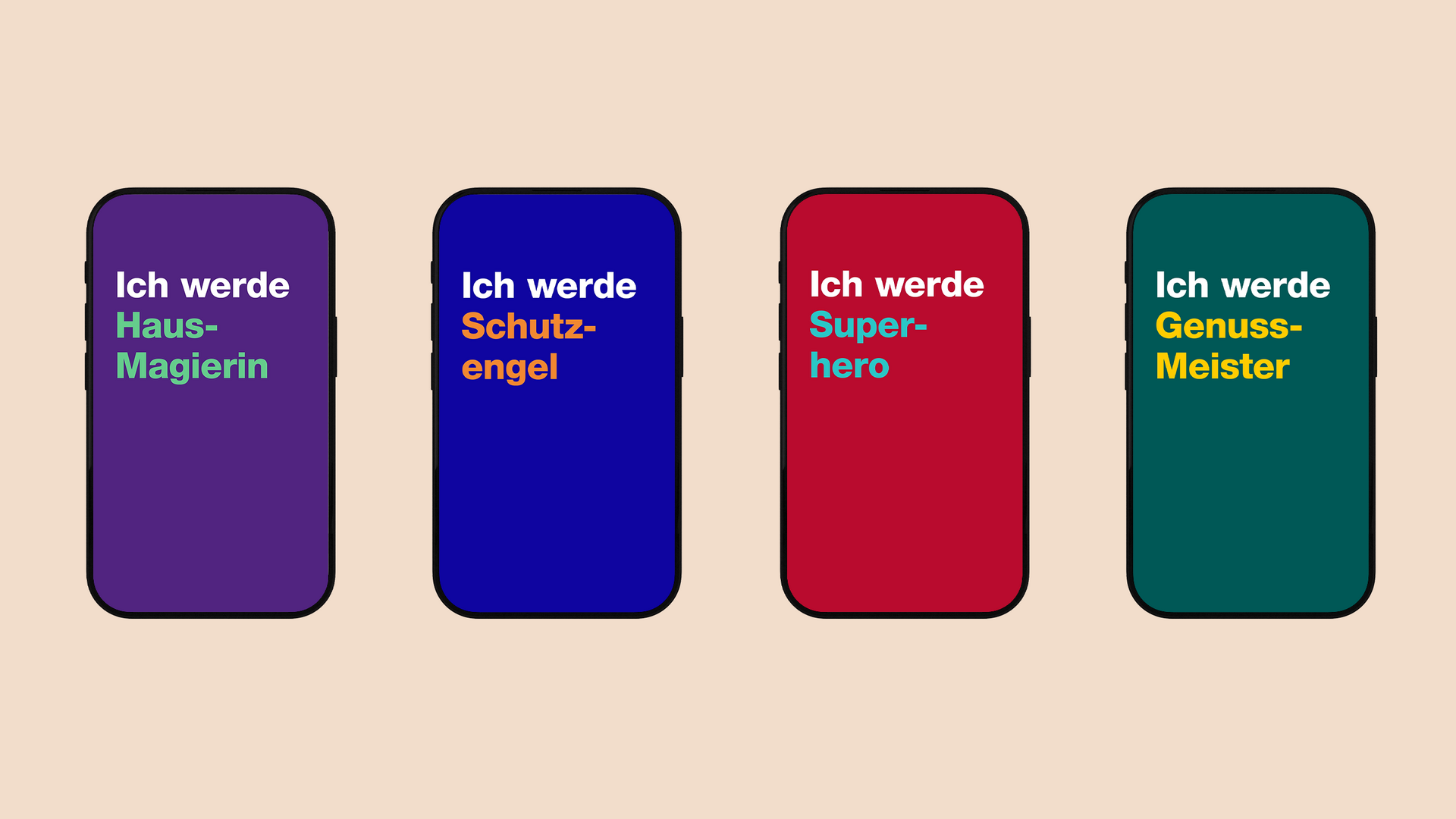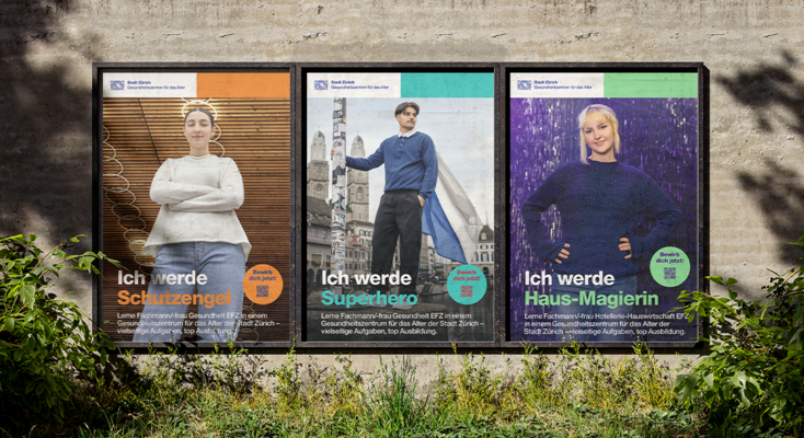 Die Lernenden wurden im Stadtraum Zürich an wiedererkennbaren und dem Sujet entsprechenden Schauplätzen fotografiert und gefilmt. Die entstandene Kampagne wurde über sämtliche Social-Media-Kanäle als Ads ausgespielt. Mit «Ich werde … Schutzengel, Superhero, Genuss-Meister, Haus-Magierin» wurden die Lehrstellen FaGe, Koch/Köchin und Fachmann/-frau Hotellerie/Hauswirtschaft gemeinsam mit den aktuellen Lernenden beworben.