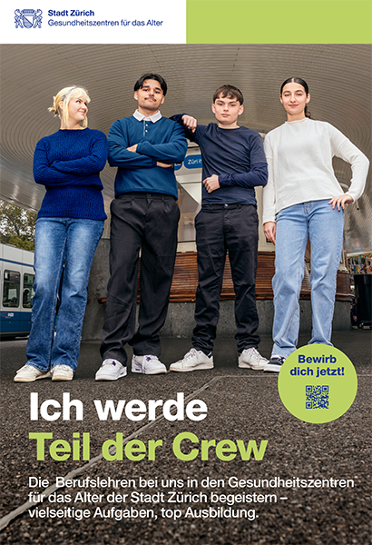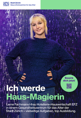 Die Gesundheitszentren für das Alter (GFA) der Stadt Zürich bilden an 40 Standorten in zehn verschiedenen Berufen junge Menschen aus. Jährlich werden mehrere Hundert Teenagerinnen und Teenager gesucht – sie sollen für eine Ausbildung gewonnen werden.