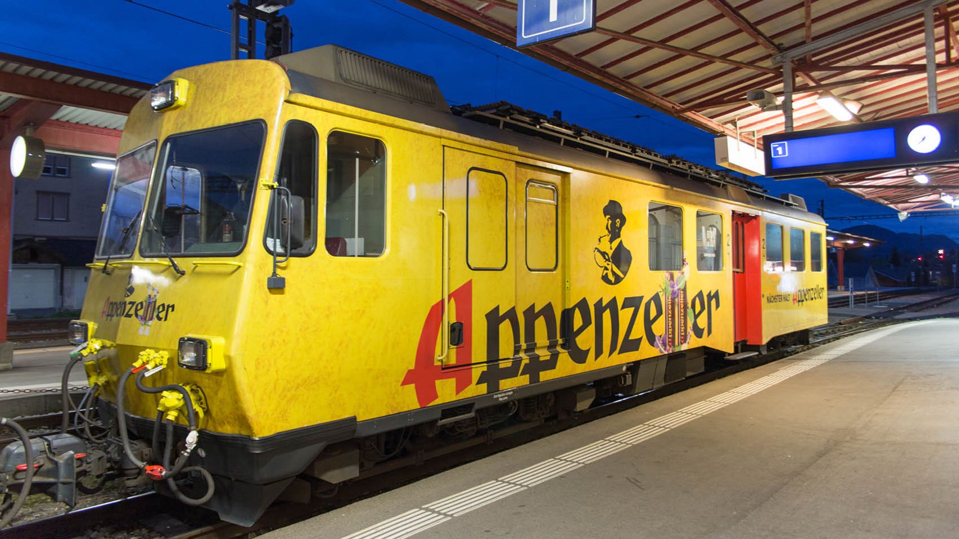 Die Appenzeller Bahnen haben den Triebwagen im Appenzeller-Alpenbitter-Design an die Achenseebahn im Tirol verkauft. Die neuen Besitzer lassen die Werbung drauf: «Selbstverständlich, sie ist ja sehr ansprechend gestaltet.» Das Designteam von KA BOOM freut sich und dankt für die Blumen aus dem Tirol!