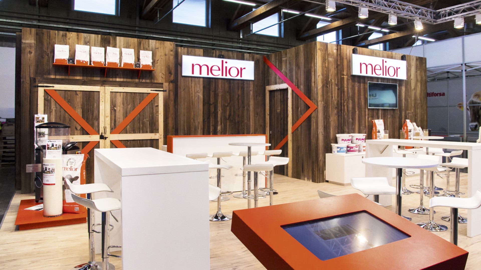 KA BOOM entwirft, Formdrei baut auf. Für den Futtermittel-Hersteller Melior hat KA BOOM den Messeauftritt an der «Tier&Technik» in St. Gallen neu konzipiert. Umgesetzt und aufgebaut wurde der aufsehenerregende Stand von unserem Messebau- und Ladenbauspezialisten Formdrei.