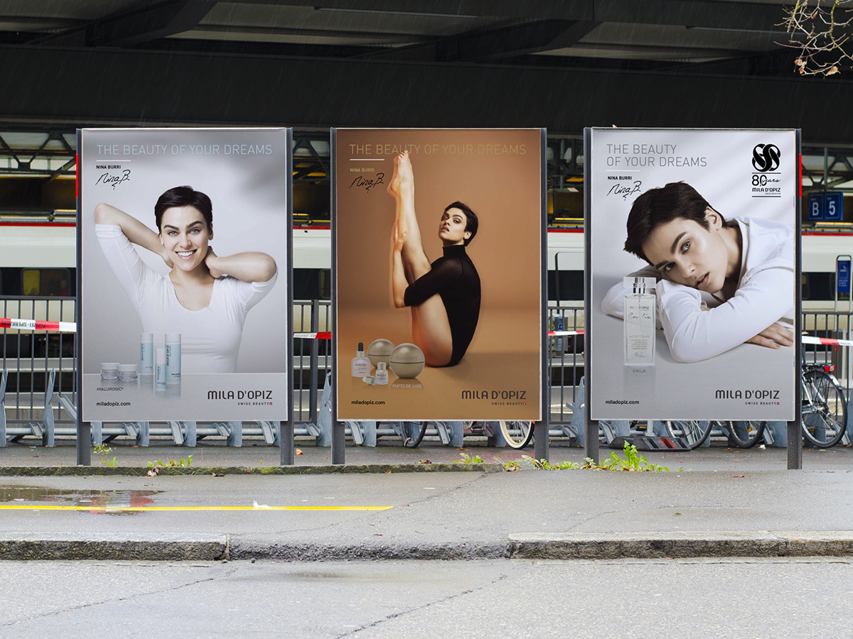 Zum 80-Jahr-Jubiläum lanciert der Kosmetikbrand Mila d’Opiz eine neue Kampagne mit Model und Kontorsionistin Nina Burri – und erstmals in der Firmengeschichte ein Parfum («Emilia»). KA BOOM hat die Kampagne, die Parfumverpackung sowie die Kommunikationsmittel zum Jubiläum gestaltet.