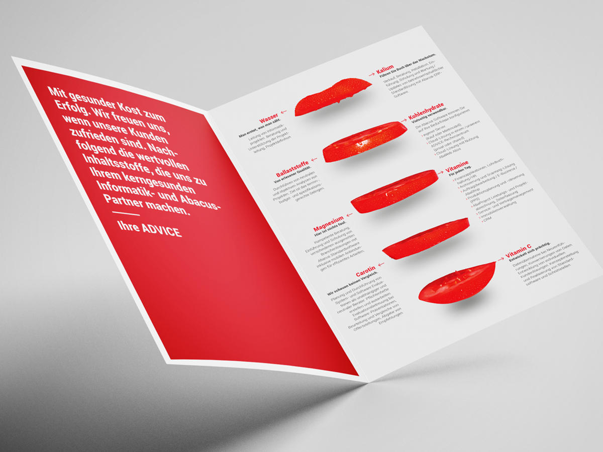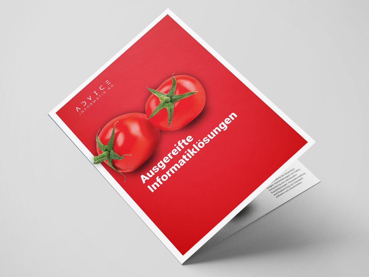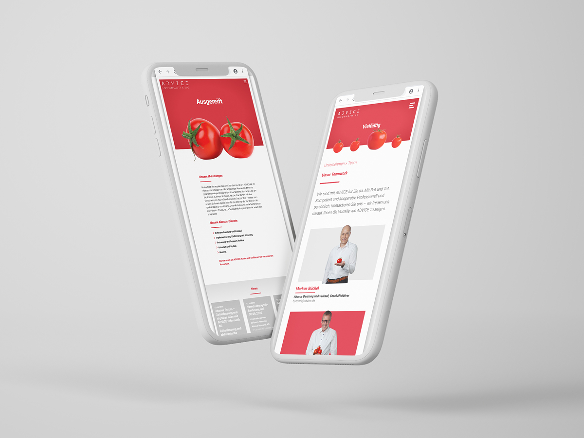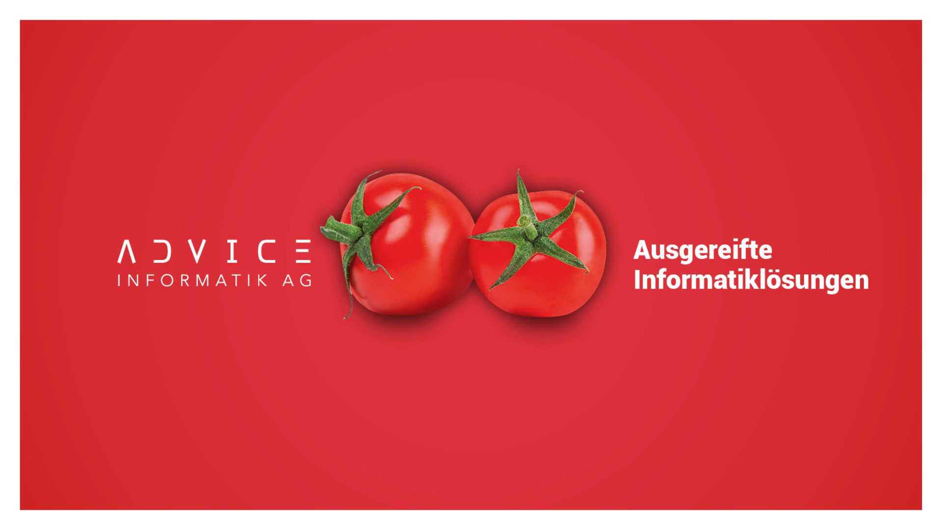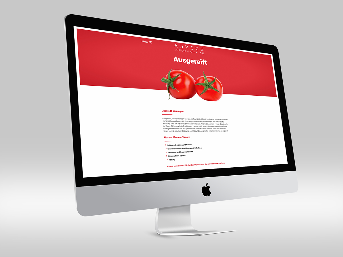 Ausgereifte Informatiklösungen: Das bietet die Advice Informatik AG. Hier dockt KA BOOM beim Redesign des Auftritts an und setzt auf reife Tomaten als Symbol.
