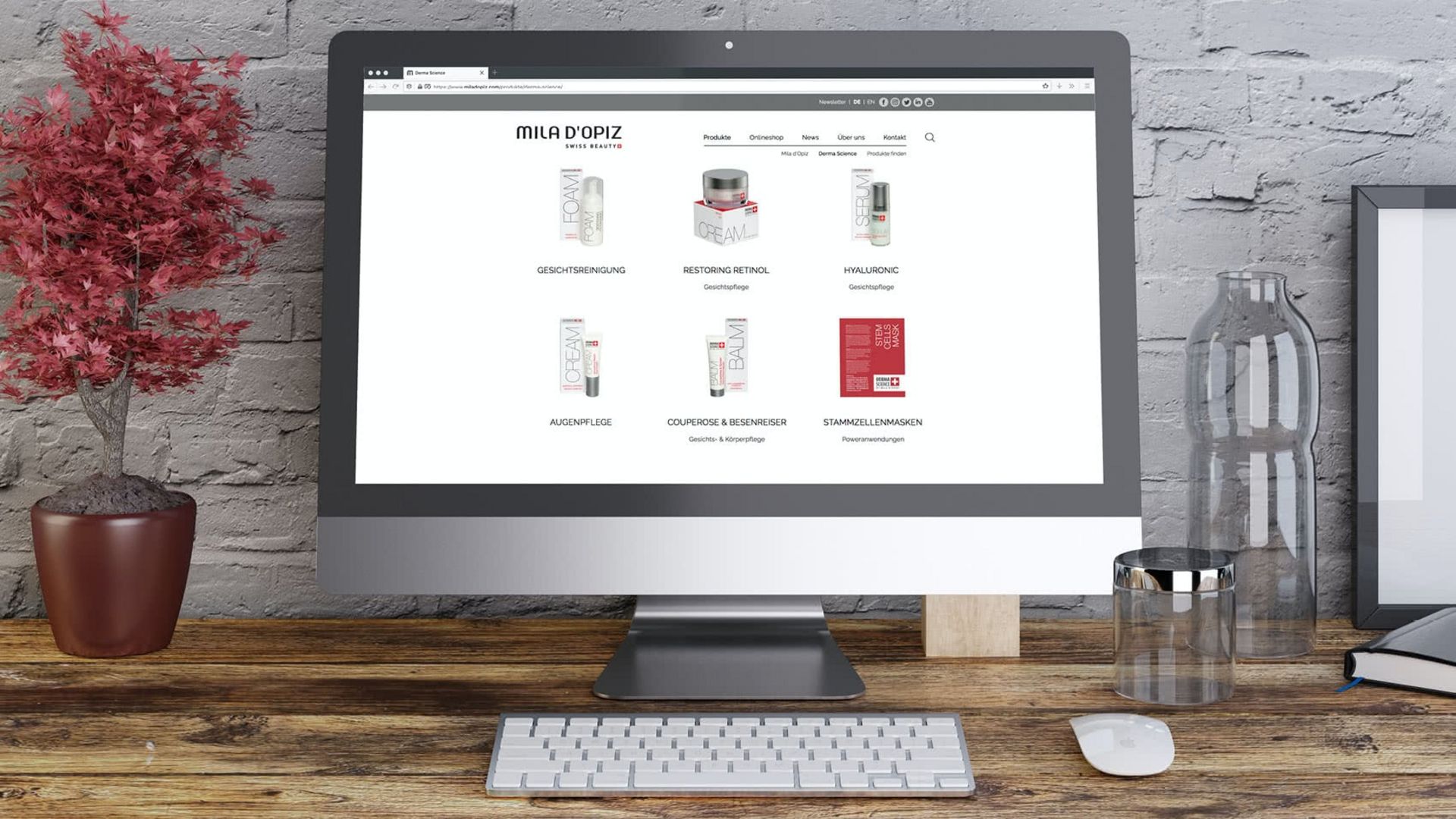 Willkommen daheim! Die Produktlinie Derma Science by Mila d’Opiz zügelte ihren Webauftritt auf die Mutterseite – mit kräftiger Umzugshilfe von KA BOOM.