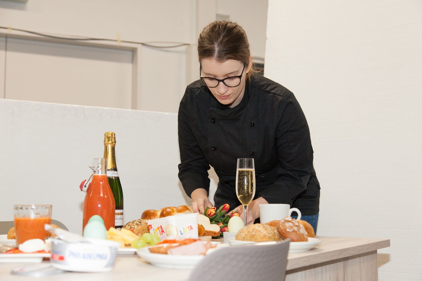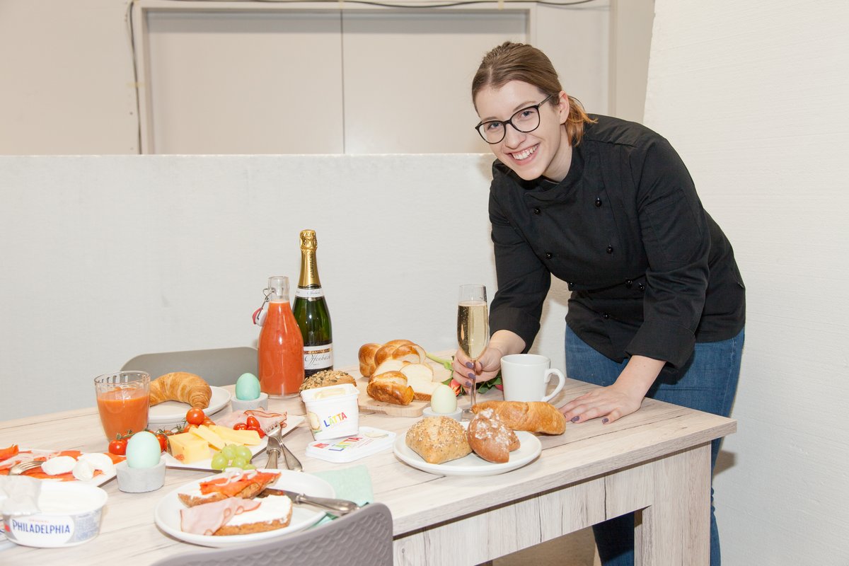 Gemeinsam mit ihm und dem Kunden bespricht sie aufgrund des Fotobriefings, was genau zu tun ist – welche Lebensmittel in welchem Stil inszeniert werden. «Ich beschaffe die nötigen Requisiten wie Geschirr, Hintegründe und Dekoelemente sowie die Lebensmittel», erklärt Corina Gassner, die dank der Kombination von Koch- und Marketingausbildung das nötige Rüstzeug für diesen anspruchsvollen Job mitbringt. Stichwort Rüsten: Für die Zubereitung der Speisen steht bei KA BOOM eine topmoderne Gastroküche zur Verfügung. Und Corina stellt klar: «Wir verzichten auf künstliche Zusätze, die fotografierten Menüs kann man tatsächlich essen.»